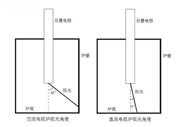 12.爐壁耐火材料使用壽命長。交流電弧爐的弧光與石墨電極的夾角為45°,非常容易打到爐壁上,從而破壞爐墻耐火材料。而直流電弧爐的弧光與石墨電極之間的夾角是12°,不會打到爐壁上,不會在爐壁上形成熱點,因而不會破壞爐壁耐火材料。